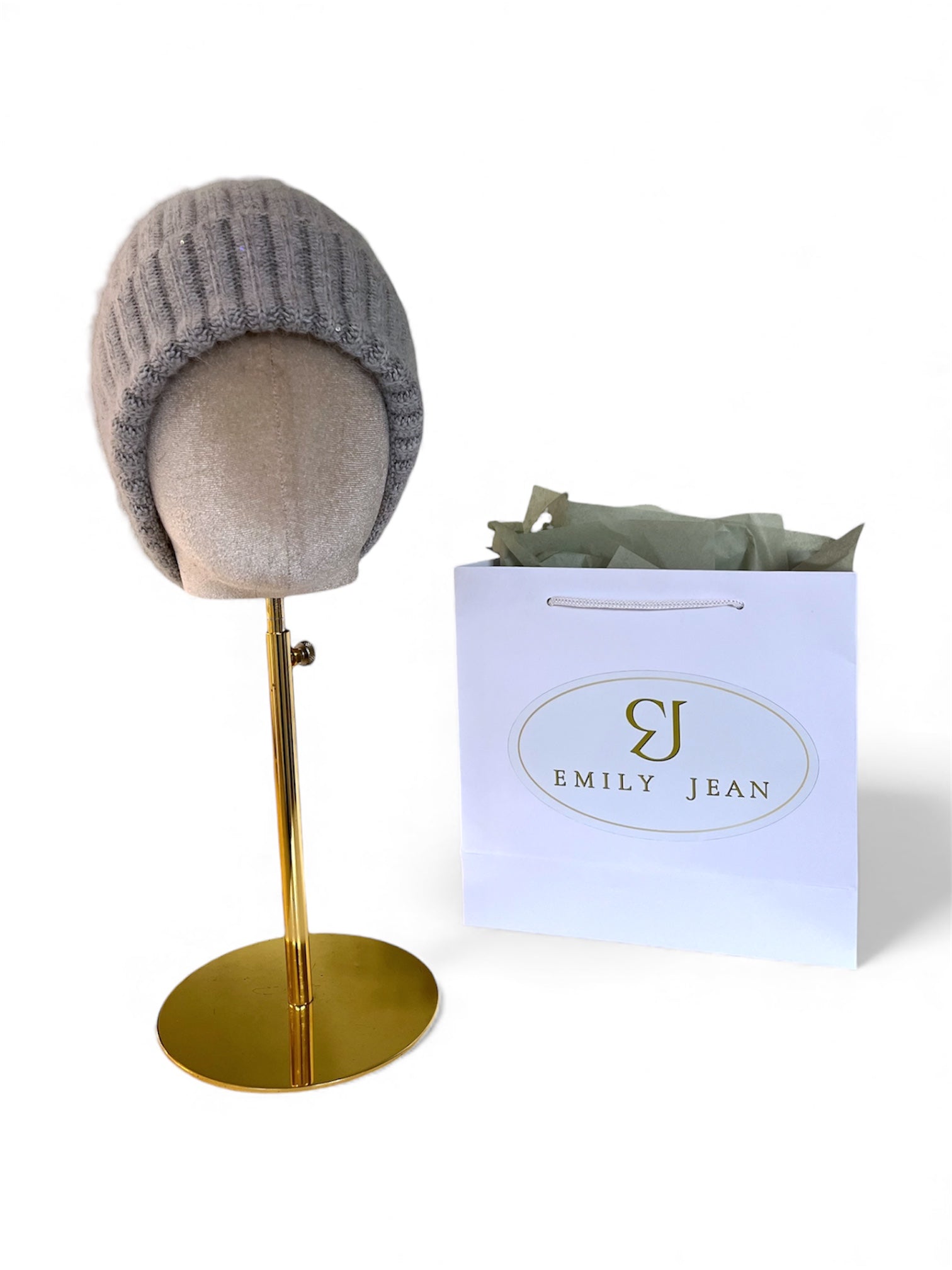 This grey beanie is designed with a cashmere blend which makes it very comfortable to wear and will keep you stylish and warm through the winter months