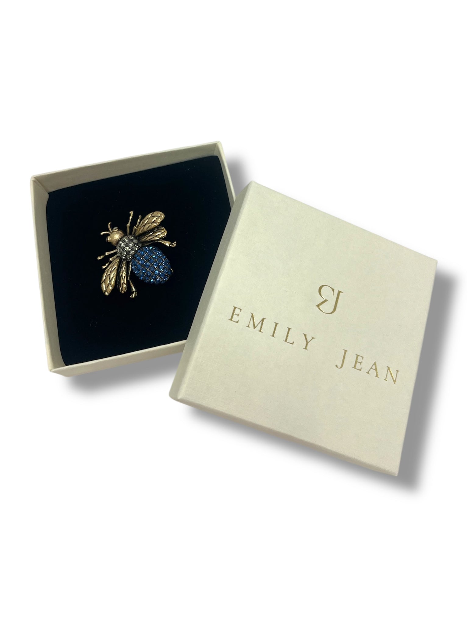 Add a playful, high-fashion touch to any outfit with this small Beetle Brooch in mightnight blue and gold tones.