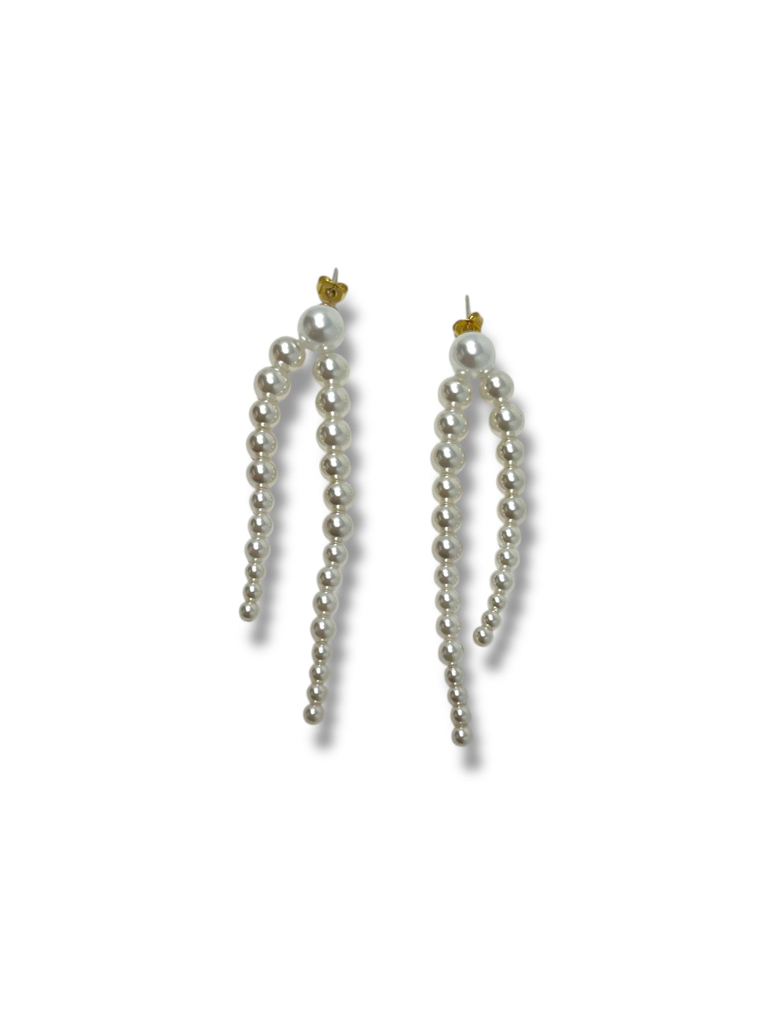 Delicate ivory pearl drop earrings, perfect for adding a soft elegant touch to any outfit.