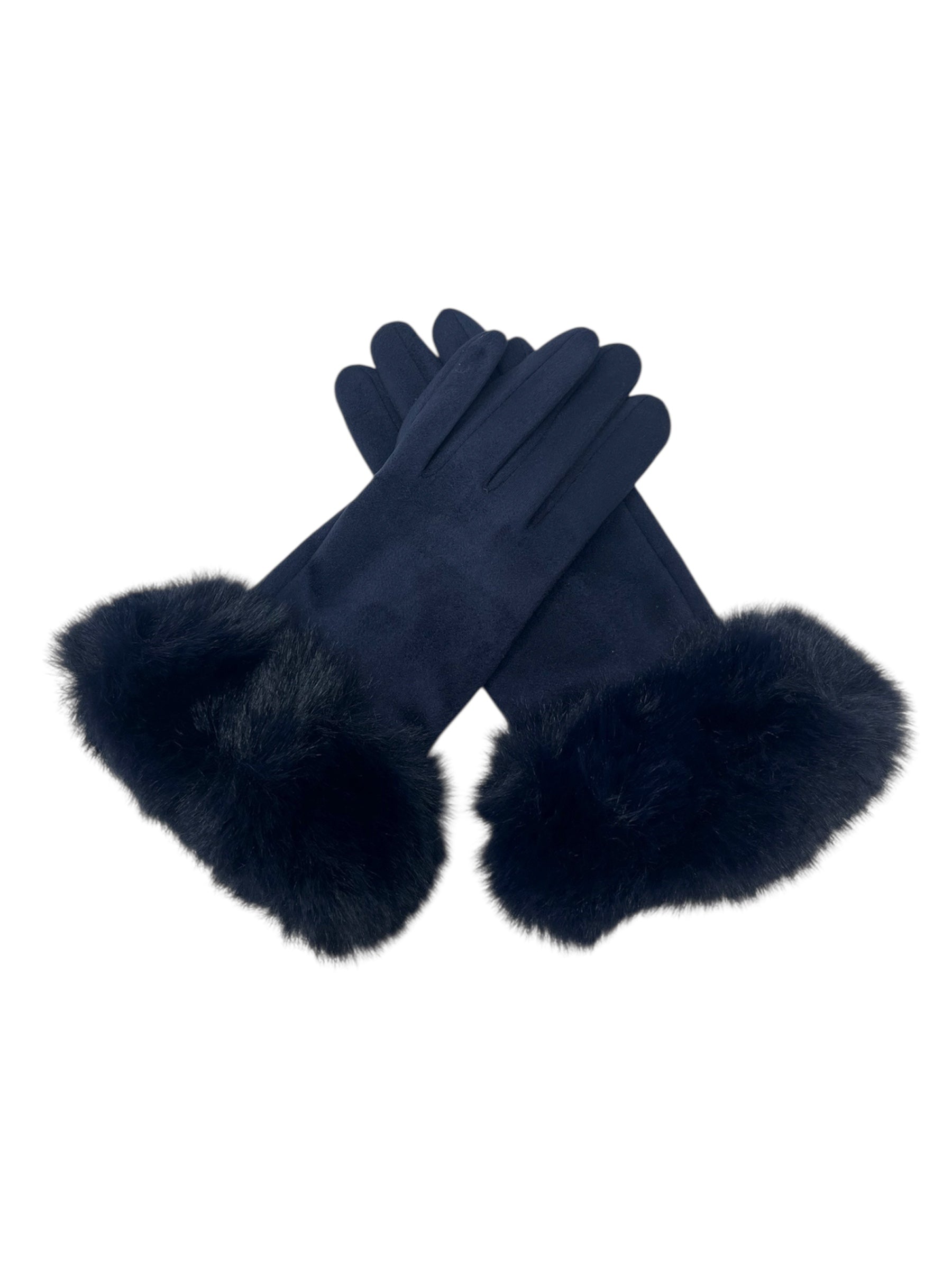 Unwrap the magic of the season with our curated gift box featuring a stylish pair of navy faux fur trimmed gloves and a navy suede clutch bag.